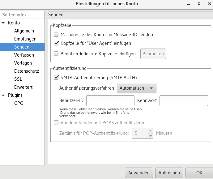 2. Senden – wähle SMTP-Authentifizierung